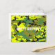 Happy Birthday Camouflage Yellow Green Abstract Postcard