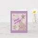 purple birthday banner on a background of soft rose coloured flowers and butterflies