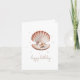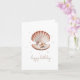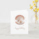 A delicate birthday greeting card featuring a watercolor-style illustration of a single, beige scallop seashell gently opened to reveal a luminous pearl nestled inside. The text "Happy Birthday" is in a graceful, handwritten-style script in a soft grey colour placed elegantly below the shell, creating a sense of understated elegance and heartfelt wishes, perfect for a close friend or family member.