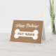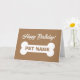 Happy Birthday card for pet dog with cute big bone. Brown or custom colour background. Personalise with pet name and message on the inside. Fun greeting card for animal lover.