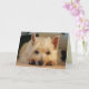 This lovely dog birthday / greeting card has a picture of a cute Westie (West Highland White Terrier) dog on the front of the card. In the inside of the card it has in light brown lettering ' HAPPY BIRTHDAY, HAVE A WOOFING GOOD DAY'. On the back of the card is a smaller image of the Westie dog photograph which is on the front. This is a beautiful birthday / greeting card which we are sure your friend / loved ones will treasure.