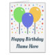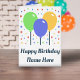 Customisable happy birthday greeting card with coloured balloons: you can customise front and inside card with name and text you want, or leave blank. This design can be used to celebrate a birthday, especially that of a child!