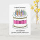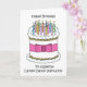 A large cartoon birthday cake covered in lit candles and with a big pink bow around it. The words 'Happy Birthday to a Special Cardio Dance Instructor' accompany the image.