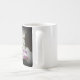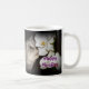 A lovely silver tabby British Shorthair cat with orange eyecolour on this unique cat mug with "happy birthday" text on white flowers and black photo background. A perfect gift for cat lovers. Please personlize with your own text. Original cat photo by mmersdesign.