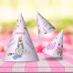 A cat eating colourful cake, a cat about to attack a pinata, and a cat relaxing on her bed while wearing a birthday tiara are all depicted on this amusing birthday hat. Add your child's name to make it extra personal and special!
