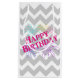 Happy Birthday grey and white chevron zigzag pattern and star fireworks gift bag.