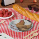 This paper plate features a buff orpington hen enjoying the bare ground after some snow melted. Great for birthdays in the winter months!