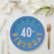 A versatile and eye-catching paper plate design that features the circular text 'Happy Birthday' in turquoise and yellow, around an age number. Change the background colour and age to any of your choice using the provided template.