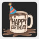 Happy Birthday Coffee Cup with party hat Square Sticker