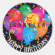 Happy Birthday Colourful Balloons on Black Classic Round Sticker
