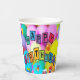 Colourful "Happy Birthday" paper party cup. It is decorated with balloons, a slice of cake, presents, party hat, and a clown! The kids will love this theme, check out more tableware items with this theme.