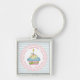 Happy Birthday Cupcakes Blue Stripes with Pink Key Ring