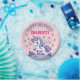 Adorable magical paper plates to celebrate your birthday. A pink plate featuring a cute cartoon drawn unicorn. She has a colourful mane and tail in pastel blues, pinks and purples, a yellow horn on the crown of her head, a white body and purple hooves. She is standing on purple grass with purple bushes in the background and surrounded by colourful stars. In curved purple text at the top of the plate are the words 'Happy Birthday' and below this in pink text is a template to add your name to personalise this cute addition to your party celebrations.