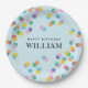 Happy Birthday Custom Name Confetti Pastel Blue Paper Plate
