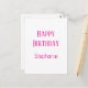 Happy Birthday Custom Name White Hot Pink 2025 Postcard