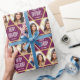 Personalised wrapping paper is a great way to add a personal touch to your gift-giving! This stylish design features a seamless star pattern, showcasing two of your favourite photos along with the name of the recipient. The 'Happy Birthday' message can also be customised or tailored to suit different occasions. This versatile design is ideal for family and friends to commemorate birthdays, holidays, Hanukkah, Bar or Bat Mitzvahs, graduations, moving to a new house, and much more! It comes with either a matte or glossy finish. Colours: purple-pink plum, white and gold colour.