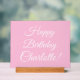 Happy Birthday custom script name text light pink Acrylic Sign