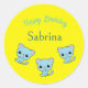Happy birthday cute bouncy blue kittens yellow classic round sticker