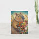 Folded Birthday Card – Sweet Capybara Holding Flowers (Custom Front Text)