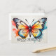 This unique happy birthday postcard features an illustration of a floating butterfly. Please feel free to adjust the text on the reverse side of this postcard.