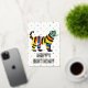This greeting card features a cute and colourful tiger and rainbow polka dot pattern with "Happy Birthday" embellished in your choice of silver or gold foil.