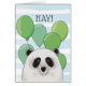 "Happy birthday" card with panda in blue and green colours.