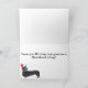 This cute Dachshund has dressed up just for the occasion to wish the Dachshund lover in your life a Happy Birthday! A black and tan dachshund in a party hat. Balloons surrounding him and a cake at his feet.