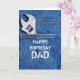 An adjustable wrench in the back pocket of a pair of blue jeans, with the greeting: Happy Birthday Dad. Perfect for the handyman dad in your life! Totally customisable to personalise as you please!