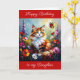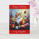A sweet birthday card that you can personalize. This one says daughter but you can change that. The front has a cute whimsical colorful folk art cat sitting in flowers and surrounded by butterflies.