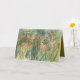 Happy birthday greetings featuring several deer grazing in a grove of tall foliage, ever watchful and ready to dart away hand drawn with ink and painted with watercolor. On the inside is a coordinating shade of olive green and text you can edit to fit your needs.