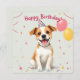 Celebrate a special day with this adorable Happy Birthday design featuring a cute dog in a party hat with balloons on a soft grey background. Perfect for dog lovers, kids, or anyone who enjoys playful and heartwarming birthday art. This charming pup brings smiles to any celebration.