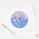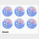 Stickers with my original 3d artwork of a cheerful dolphin wearing a party hat surrounded by balloons under a blue sky. Text says "Happy Birthday".