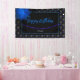 Make your birthday celebration a memorable affair with this exquisite can banner design. Featuring a sleek black background adorned with intricate blue floral accents and shimmering beads, this banner set the tone for a truly stylish event.