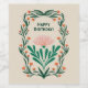 Happy Birthday wine label with a floral frame and a floral illustration in the middle.
