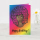 This design features "Queen, phenomenal, beautiful, smart, magic, boss, loving, sexy, independent, funny, creative, and strong" nested in her afro, with layered necklaces on a rainbow background. Customise your message.