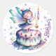 This design has been expressly created for girls birthday. It's a lovely illustration of a pretty little fairy upon a birthday cake trying to adjust the candles on it.