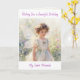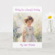 A cute fairytale themed birthday card for a little girl. Inside is a sweet poem. The front has a little fairy girl surrounded by flowers in pretty sage green and purple colors. All text on this birthday card can be edited. You can add her name in the personalize area.