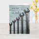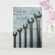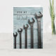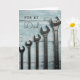 Wish Dad all the very best with this simple design - a set of wrenches against timber backdrop, in soft blue tones. Just the thing for the professional or home handyman. This card is left blank inside for your own personal message.