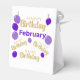 Celebrate February birthdays with these elegant favour boxes, designed to add a touch of sophistication to your party! Featuring “Happy Birthday” in shimmering gold, these boxes are beautifully accented with purple balloons and the word “February,” inspired by the month’s amethyst birthstone. Perfect for holding treats, small gifts, or party favours, these sturdy boxes are as practical as they are stylish. Make your February celebration unforgettable with these vibrant and charming party essentials!