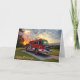This birthday card features an amazing image of a fire engine against a glowing sky!