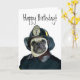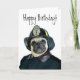 Happy Birthday Fireman pug greeting card