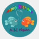 Happy Birthday Fish, Heart, Personalised. Classic Round Sticker
