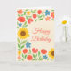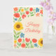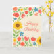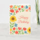 This birthday card features a watercolor illustration of red tulips and yellow sunflowers. The design is presented as a template, allowing for easy customization of both the artwork and the greeting. AI-generated artwork with design direction by Susang6.
