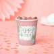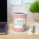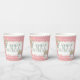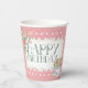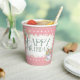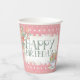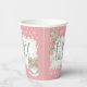 Paper cup decorated with pink and white polka dots, tea cup filled with floral designs with pink and green colours. See matching themed tableware in my store!