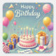 Happy Birthday for Kids - Colourful Balloons Cake Square Sticker