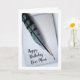 A single blue jay feather on note paper with the script "Happy Birthday Dear Mum" decorates this happy birthday greeting card. Customise the cover and inside as you like before checkout. Art, image, and verse copyright © Shoaff Ballanger Studios.