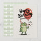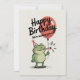This adorable birthday design features a cute green frog wearing a red striped party hat, holding a big red balloon and blowing a party horn. The playful text reads “Happy Birthday, We're wishing you a…” with colourful confetti accents. Perfect for kids and animal lovers, this cheerful and fun illustration brings smiles to any celebration. Ideal for birthday cards, party invitations, or festive prints with whimsical charm.