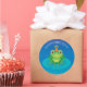 Happy Birthday Frog wearing a party hat sits on a lily pad in a background of blue. Use these stickers to put the finishing touches on all your birthday wishes for frog lovers. Seal your invitations or thank you envelopes. Use as labels for treat bags. Add to scrap book pages and photographs for accents.