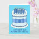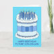 A large blue and white birthday cake covered in lit candles and set against a bright blue colored background. The words 'Happy Birthday Future Son-In- Law' accompany the image.