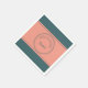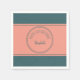 These paper napkins feature a centred geometric double circle in teal over a pale salmon background. Personalise the text fields or click customise to select a typeface colour, size, and style your prefer.